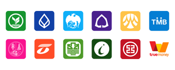 ธนาคารหลักทุกแห่ง: รองรับ กสิกรไทย, ไทยพาณิชย์, กรุงเทพ, กรุงไทย, กรุงศรีอยุธยา, ทหารไทย, ธนชาต, ออมสิน, อาคารสงเคราะห์ และอื่นๆ โอนผ่านแอปธนาคารหรือ ATM